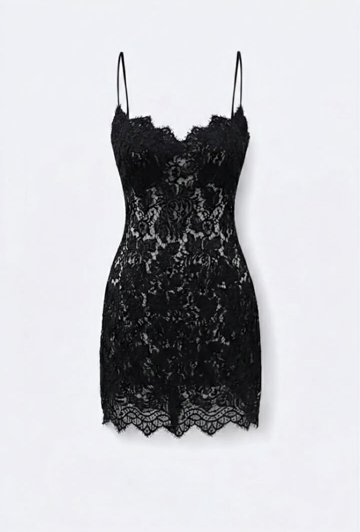 Kleid aus hochwertiger Spitze mit einem gewellten Saum. Eng anliegende Passform mit komfortablen Fit. Das Minikleid ist partiell blickdicht verarbeitet.